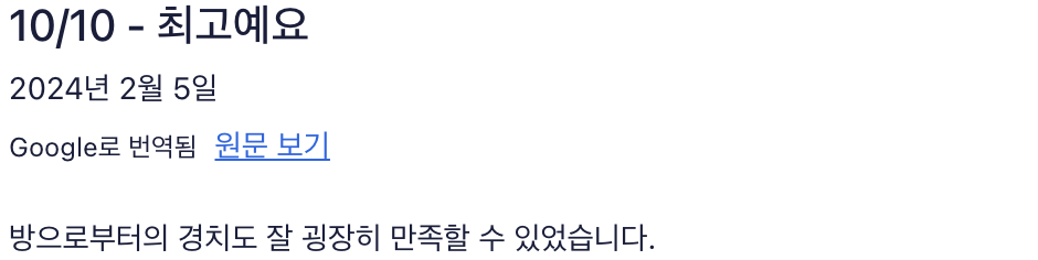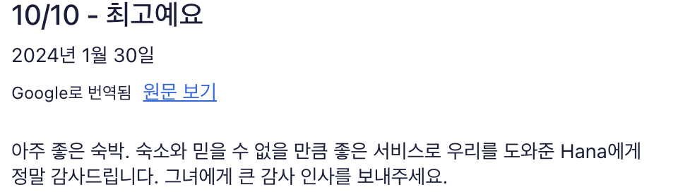 - 친절한 고객 서비스 및 아침 식사에 대한 고객들의 높은 만족도.